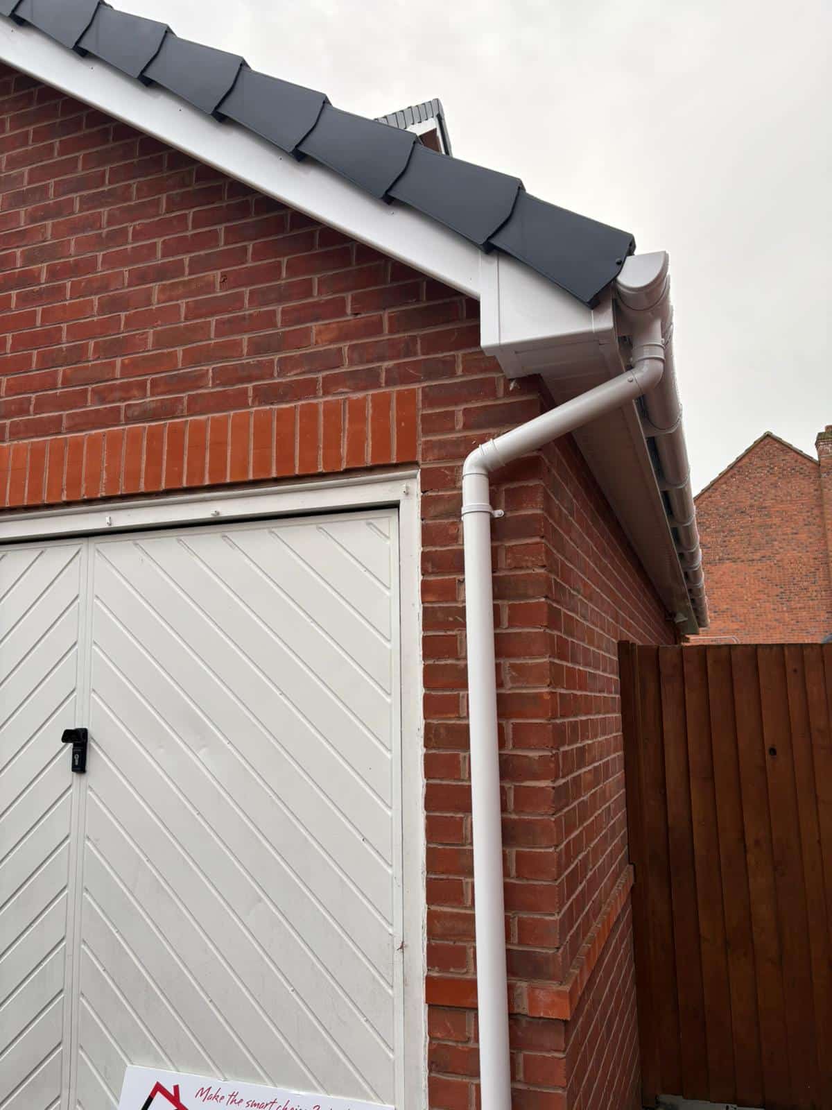 Smart Installations Mids Ltd carried out a full replacement of the fascia, soffits and guttering, installing a crisp white uPVC system that sits neatly against the brickwork.
